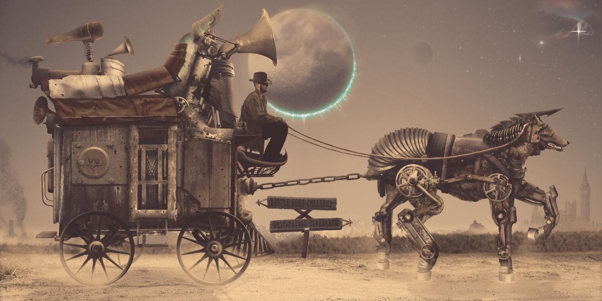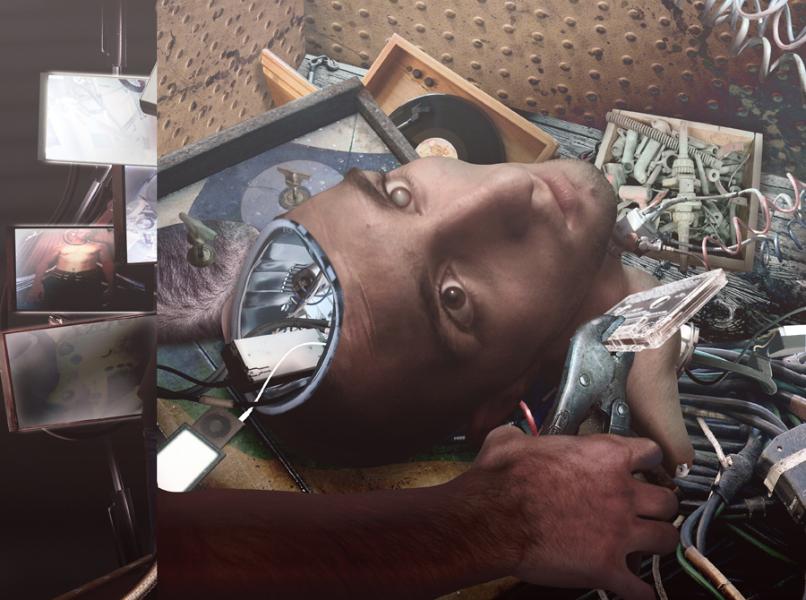 mechanical equipment cut, scaled and lit to costume the subject and